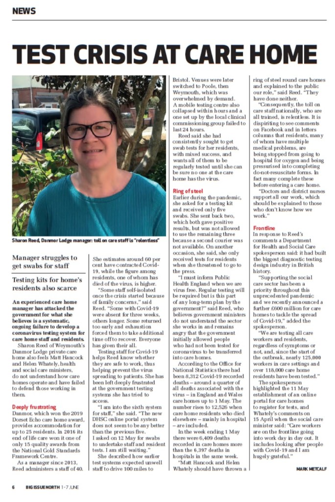 I have had many articles published in the Big Issue North magazine, where I have been fortunate to work under the direction of editor Kevin Gopal. With his help some of the campaigning articles I have written have made a positive difference to some people’s lives.