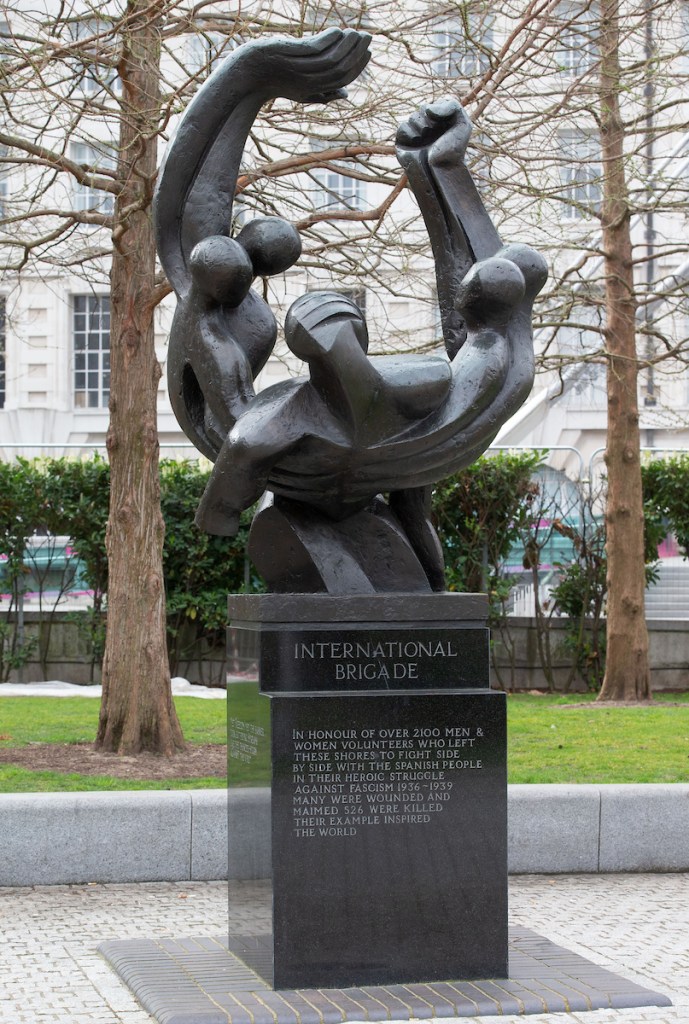 National memorial and sculpture by Ian Walters in Jubilee Gardens, SE1, to the 526 killed in Spanish Civil War who went to Spain from Britain and Ireland.