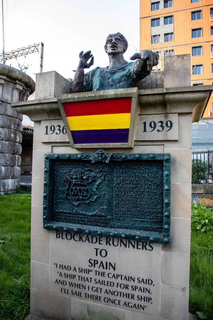 The memorial on the Clyde is dedicated to the seafarers who broke Franco’s blockade of Republican ports. Thirty-five merchant navy and eight Royal Navy seafarers died and scores were injured on vessels attacked by submarine, naval and aerial forces under fascist control between 1936-38. This memorial to seafarers stands as renewed testimony to the importance of international solidarity in the face of fascist aggression.