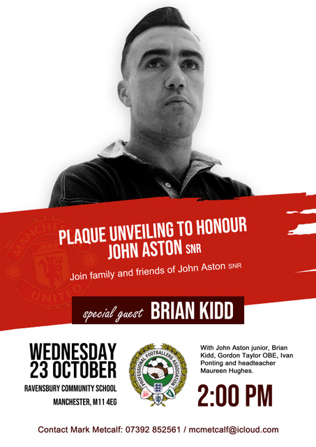 The unveiling will take place at Ravensbury Community School on Wednesday 23rd October 2019 at 2pm, those attending include Gordon Taylor OBE, John Aston Jr, Brian Kidd, journalist Ivan Ponting and headteacher Maureen Hughes.