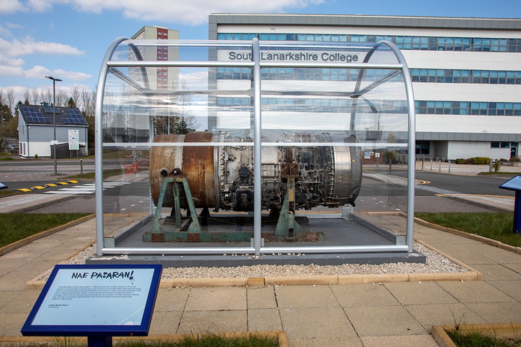 This was unveiled on 25 October 2019 and is of a jet engine subject to a workers’ boycott in Scotland during the 1970s because it was to be used by Chilean dictator General Pinochet’s airforce.