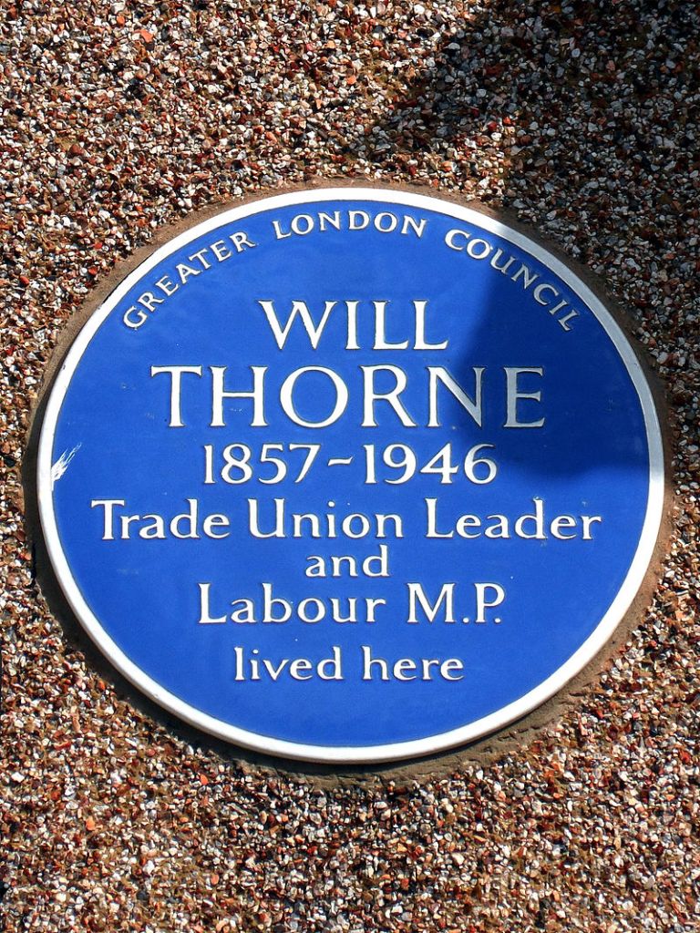 Blue plaque erected in 1987 by Greater London Council at 1 Lawrence Road, West Ham, London E13 0QD, London Borough of Newham